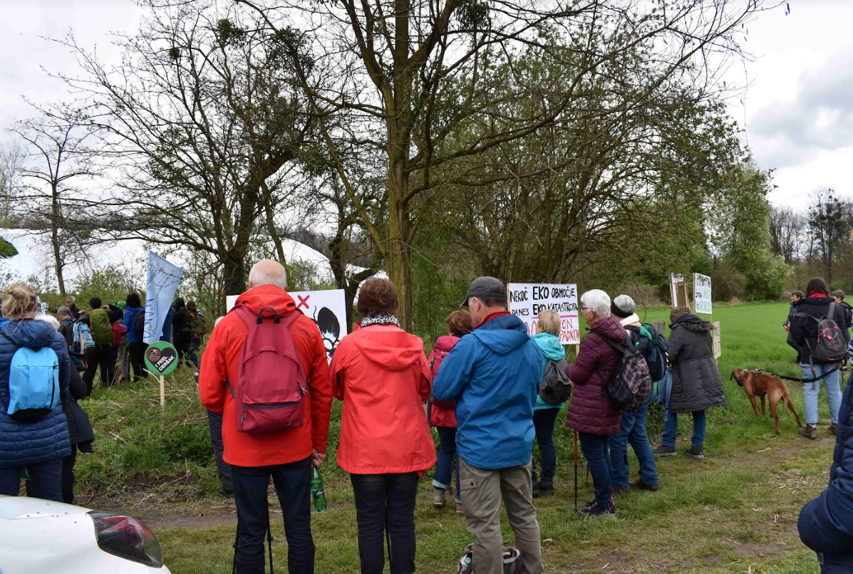 Pohodnike so pričakali tudi člani Civilne iniciative Ceršak, ki so s protestnimi transparenti izražali svoje skrbi, nezadovoljstvo, ogorčenost in tudi razočaranje.